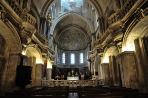 大聖堂は主に1111年に建てられました。その後増築と数回の修復をし現在に至ります。建物はプロヴァンスのロマネスク様式でギリシャとローマ建築の影響も見受けられる。教会の天辺には聖母マリアの金色の仏像(1859年より)、内装は豪華なロマネスク様式で飾られている。教会の内部の多くは12代目のアヴィニョン教皇であるヨハネス22世によって14世紀初頭に追加されます。 聖任式やクリスマス、祭日などいくつかの宗教行事もここで行われている。ミサは毎朝開催です。