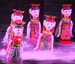 伝統芸「水上人形劇」は北ベトナムのレッドリバー・デルタ地域の村から始まりました。およそ1000年前にタイビンの農民が豊作を祈って行われていた娯楽でしたが、その後宮殿のエンターテイメントとして楽しまれるようになりました。