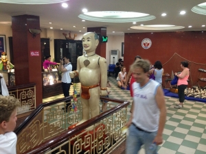 舞台は全て水の上!人形遣いが水につかりながら人形を操り、ナレーションや音楽はその場での生演奏です。舞台は1話3~5分のコミカルなショートストーリーが続き言葉が分からなくても楽しむことができます。ストーリーはどれも短く分かりやすいので、観光にも人気がある人形劇です。