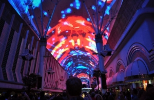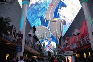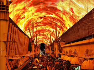ダウンタウン中心部にあるフリーモントストリート・エクスペリエンスは、ラスベガスに観光に来た者は誰しもが訪れる、「MUST SEE」の一つ。約450Mのアーケード天井に、1250万個の発行ダイオードとハイテクを駆使して繰り広げる、電飾映像ショー。想像を絶するスケールと映像の臨場感に圧倒されて、約8分間口をポカーンと開けてしまわない様、首を痛めない様注意!