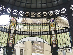 アールヌーヴォー建築が数多く点在するプラハの中でも一際目立って美しく立つのは1911年に建てらた市民会館です。この市民会館はアルフォン・ミュシャを筆頭にしたアールーヌーヴォー芸術家たちが耽美的な装飾を施しており、特に正面玄関のカレル・シュピラー作のモザイク画「プラハの感謝」は有名です。入り口下部の素晴らしいステンドグラスを始め、会館内のあちこちにアールヌーヴォー特有の美しい曲線ライン装飾が見られ豪華絢爛です。内部にはコンサート「プラハの春」が開催されるスメタナ・ホールや、吉舎店、スラブ室(ミュシャの壁画がある部屋)、東洋室、市長ホールなどがあり、毎日催行さているガイドツアーでそれらを見物することが可能です。