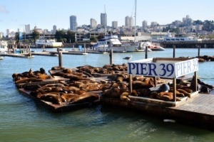 海に細長く延びるピア39は、その名のとおり、もとは桟橋として使われていた所。現在はフィッシャーマンズワーフで一番にぎやかなショッピングモールで、大人も子供も楽しめる人気スポットだ。波止場らしく、潮風と日差しで色あせた木造の建物は2階建てで、17棟の建物が木のデッキで結ばれており、レストラン13軒やショップなど110軒以上の店が軒を並べている。ピア39の端のKドックからは、野生のアシカの姿も眺められる。また、このKドックの近くには回転木馬が、中央にはミニコンサートやパフォーマンスが開かれるステージがある。